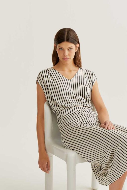 Falda midi con estampado de rayas negro