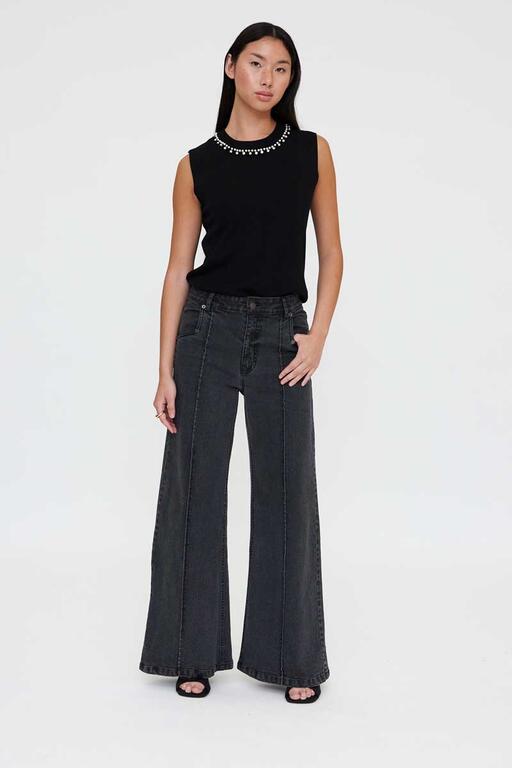 Top punto negro con cuello joya