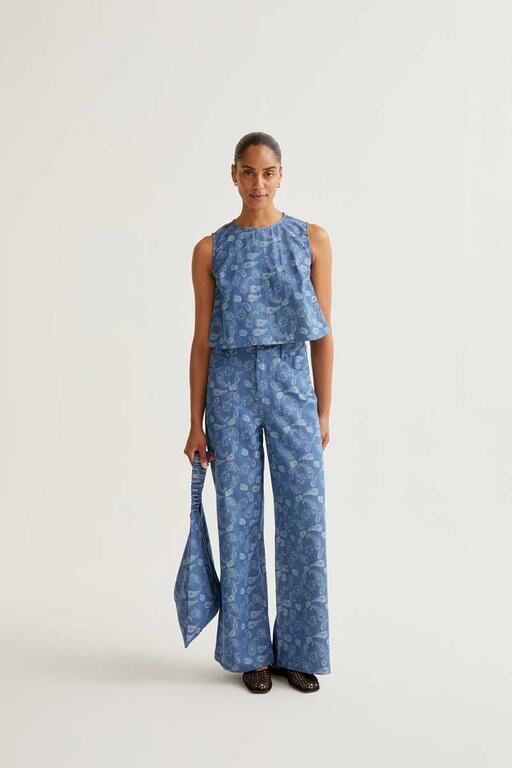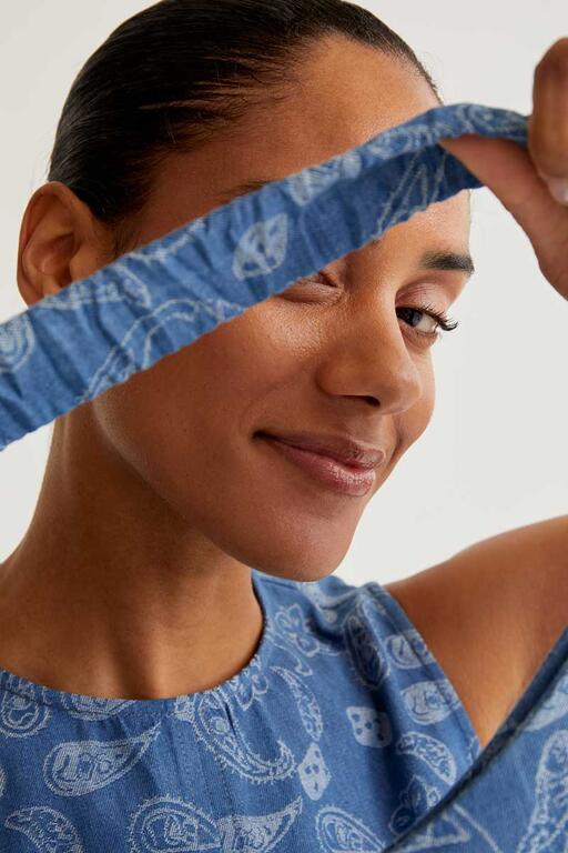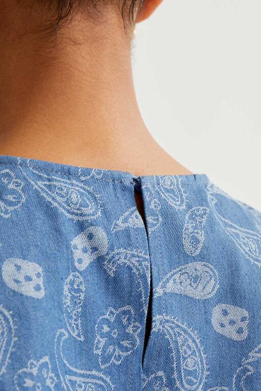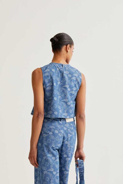 Top vaquero azul con estampado Paisley